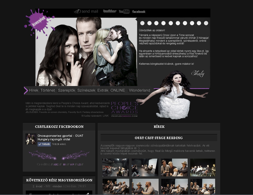 Kicsit késve, de felkerült a novemberi kinézet az oldalra! Emma&Hook és Hófehérke& Charming lett a témája, mivel ők nyerték a kedvenc pár szavazást. De igérem, hogy a becsületes Zörgőfürge&Belle szavazókat kárpótolni fogom majd a karácsonyi kinézettel az érvénytelenített szavazatok miatt. Már van egy tervem, hogy milyen lesz, ha minden jól sikerül.