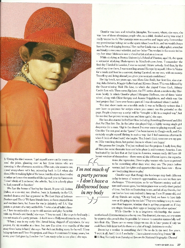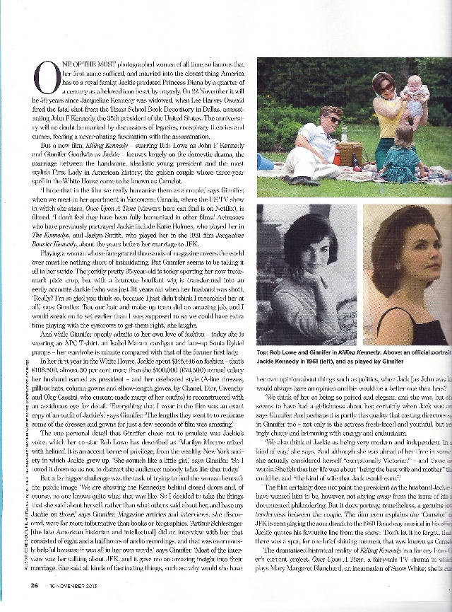 Ginny nagyon lelkiismeretesen készült a szerepre, interjúkat, cikkeket gyűjtött Jackie-ről, hogy megismerje, és bele tudja élni magát a szerepbe.